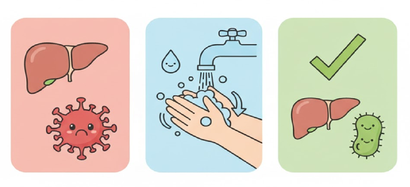 5. 특정 치료제 없이 충분한 휴식과 보조적 치료로 회복하며, 한 번 앓으면 평생 면역이 생깁니다. A형 간염 바이러스를 직접 제거하는 치료제는 없으며, 충분한 휴식, 수분/영양 공급 및 증상 완화(대증 요법)가 치료의 핵심입니다. 대부분 몇 주에서 몇 달 안에 완전히 회복되고, 회복 후에는 평생 지속되는 면역력을 얻습니다.