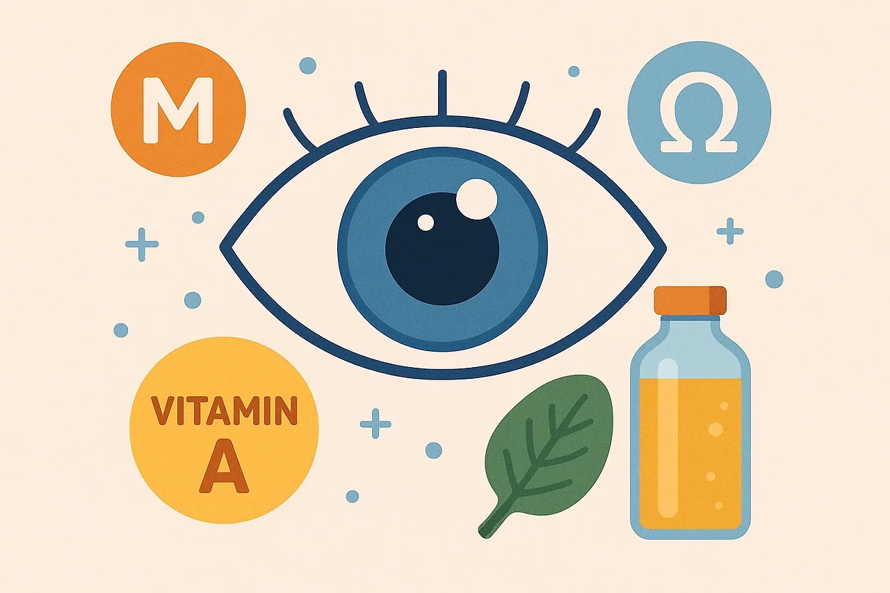 비타민 A는 시각 기능에 직접적으로 관여하는 가장 기본적인 영양소입니다. 망막의 간상세포에서 빛을 감지하는 로돕신의 구성 성분으로, 야간 시력과 명암 적응에 필수적입니다. 비타민 A가 부족하면 야맹증이 발생하며, 심한 경우 각막 건조증이나 실명까지 초래할 수 있습니다.