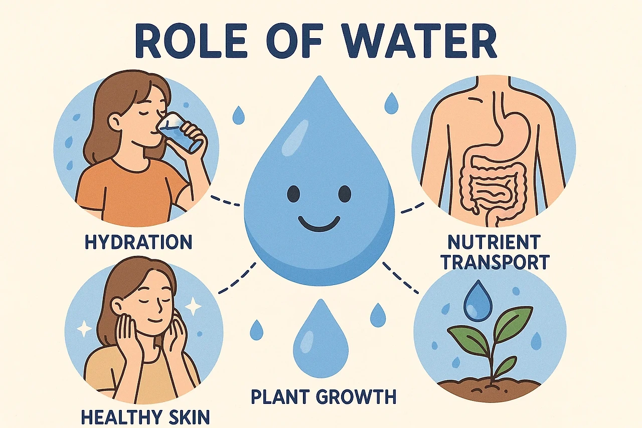 물은 인체 구성의 약 60-70%를 차지하는 생명 유지에 필수적인 요소입니다. 우리 몸에서 물이 수행하는 주요 역할은 다양하고 복합적입니다.